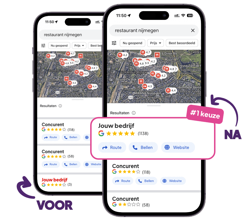 As a local entrepreneur, you naturally want to rank at the top of Google. Businesses with recent and positive Google reviews perform better in local search results and attract more attention from potential customers. With our Google Review Displays, you can effortlessly collect more reviews—boosting your visibility on Google Maps and increasing the chances that customers will choose your business over the competition.