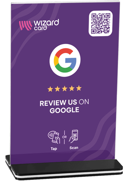 Google review displays are compact, professional signs designed to encourage customers to leave a Google review. Each display features both a QR code and NFC technology. Customers can choose to scan the QR code or simply hold their phone close to the display to go directly to your Google review page. Place it on a counter, restaurant table, or any high-traffic area in your business and watch the reviews roll in.